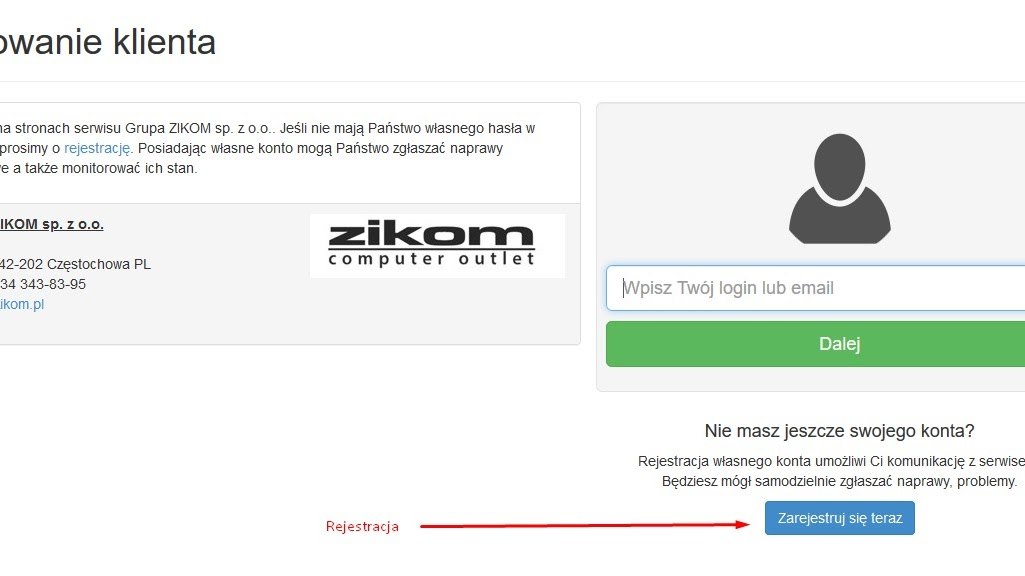 Po przejściu do platformy reklamacyjnej należy zarejestrować w naszym systemie:
