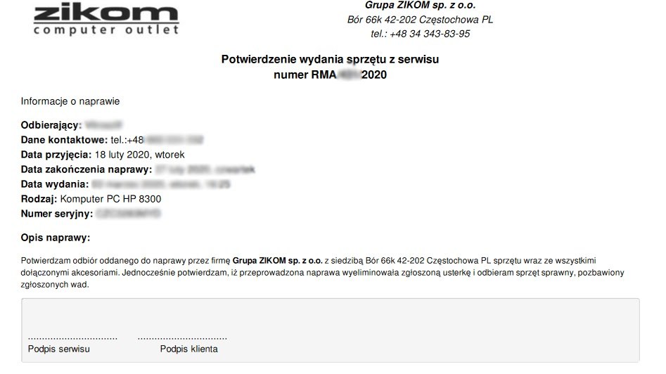 - Nie zostanie wprowadzona przez klienta do naszej platformy RMA